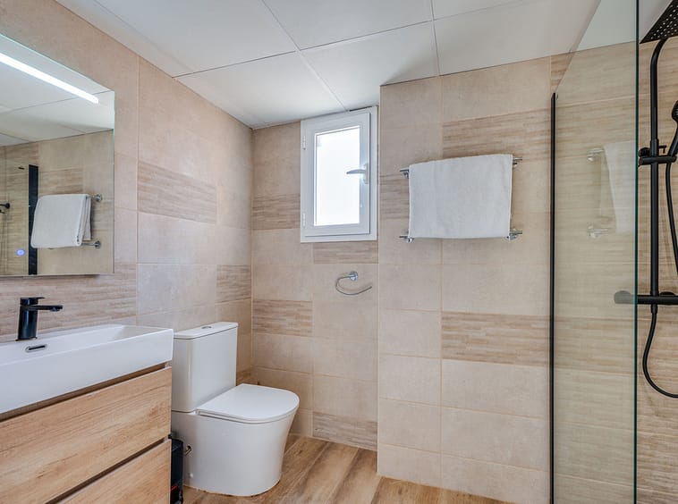 bathroom and direct access to the terrace. Large windows throughout the property allow plenty