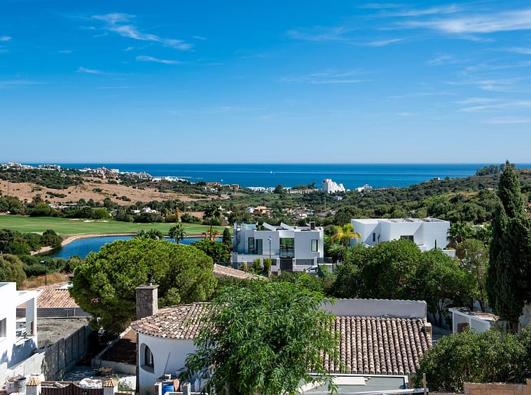 Unobstructed views of the green fairways and the Mediterranean Sea.