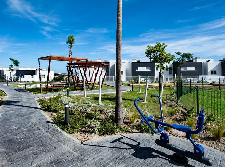 The complex offers excellent communal facilities, including two swimming pools, one for adults and one for children, a fitness center and social lounge, a co-working space, a children's playground, a pétanque court, and walking paths, surrounded by green areas.