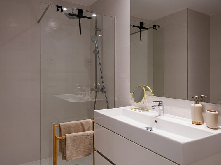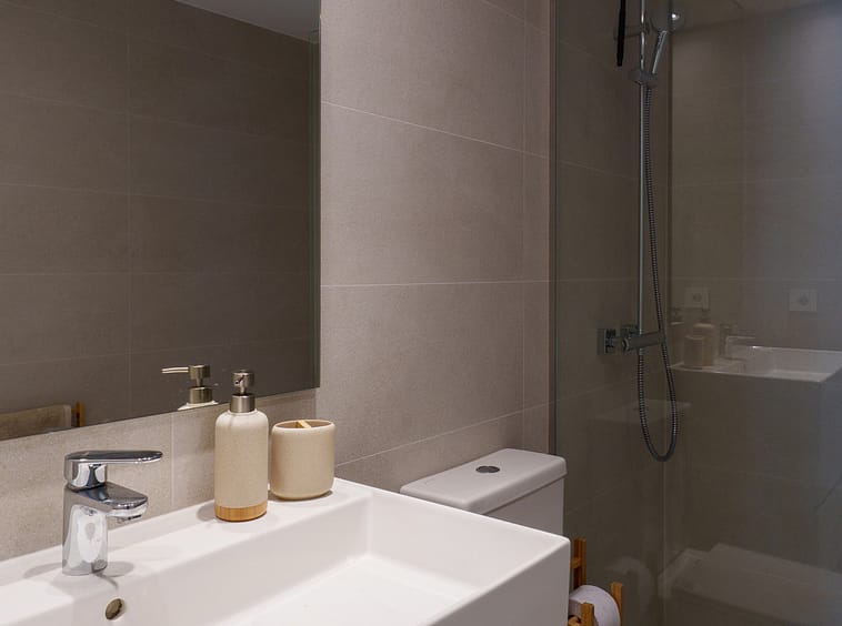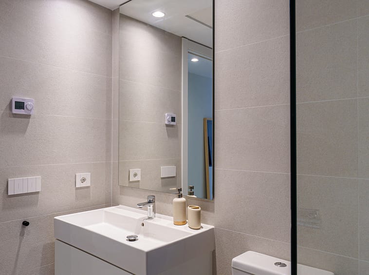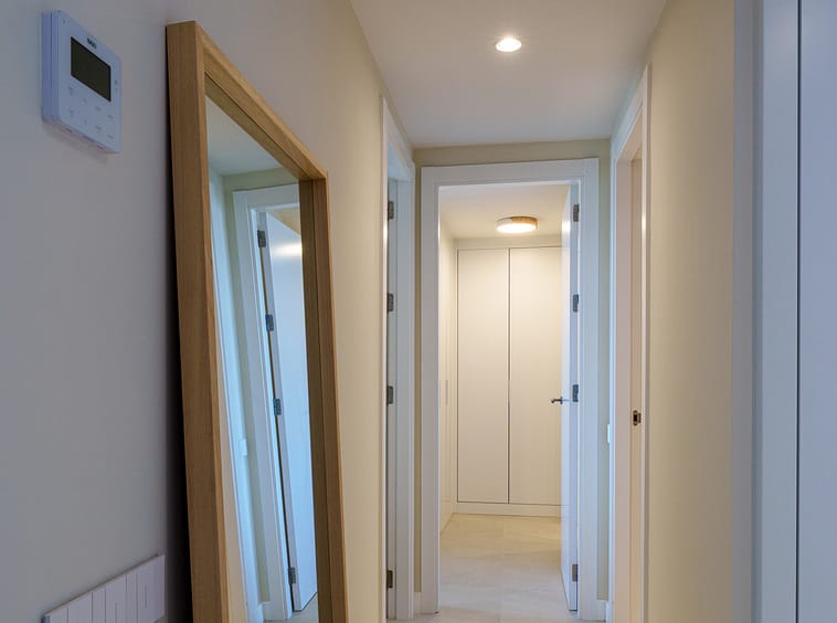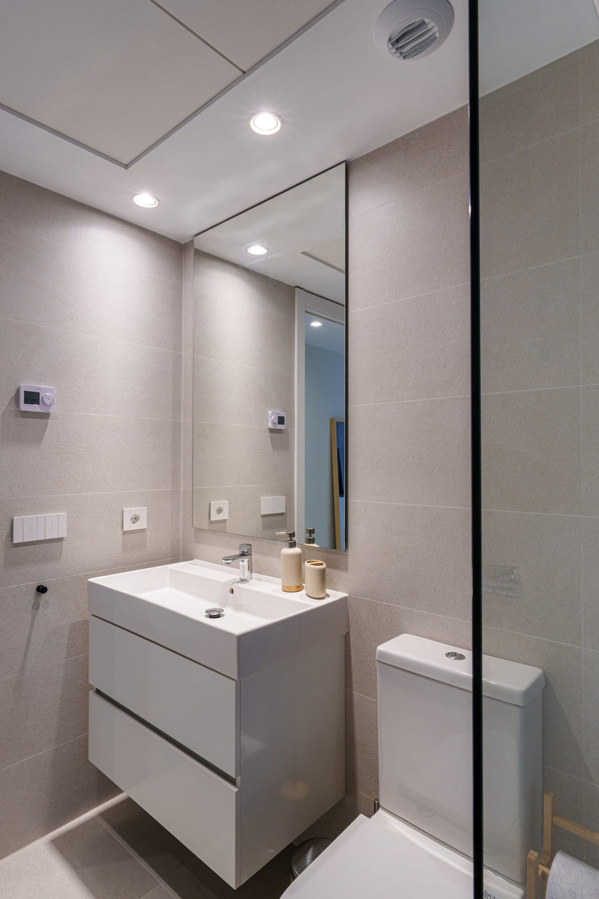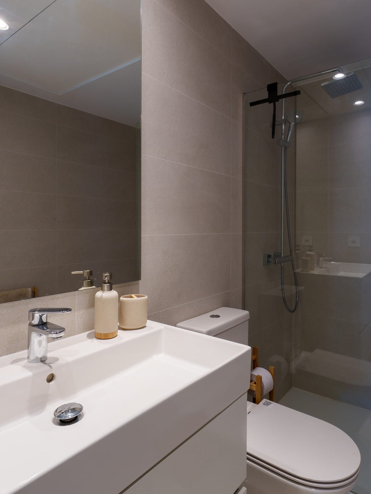 The apartment features two generously sized bedrooms, both filled with natural light and decorated in soothing neutral tones which provides direct access to a private terrace, offering the perfect spot to enjoy your morning coffee or unwind in the evening. The two bathrooms are beautifully designed with contemporary fixtures with underfloor heating