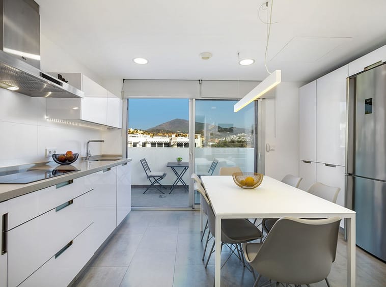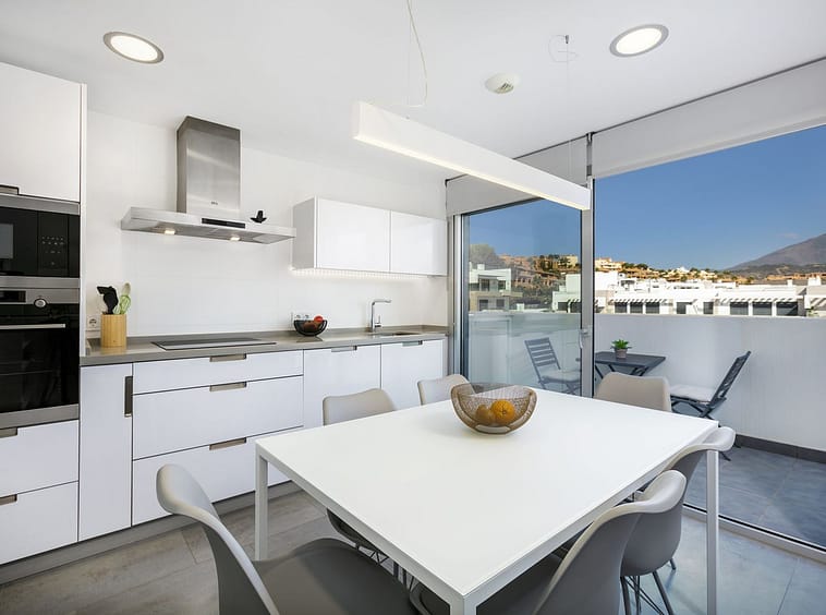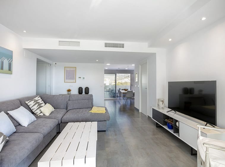 The fully equipped open-plan kitchen seamlessly connects to the dining and living areas, creating a bright and welcoming space for everyday living and entertaining. Each bedroom, as well as the kitchen and living room, opens onto its own private terrace or balcony—perfect for enjoying the sunshine and fresh air.