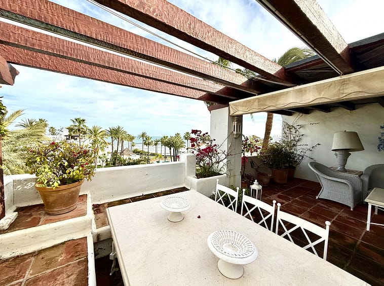 This elegant 2-bedroom penthouse in the sought-after Alcazaba Beach complex combines Mediterranean charm with modern comfort. Originally designed as a 3-bedroom apartment, it has been transformed into a spacious home with a large living area and a separate dining room, enjoying a south-facing orientation with breathtaking sea and garden views.