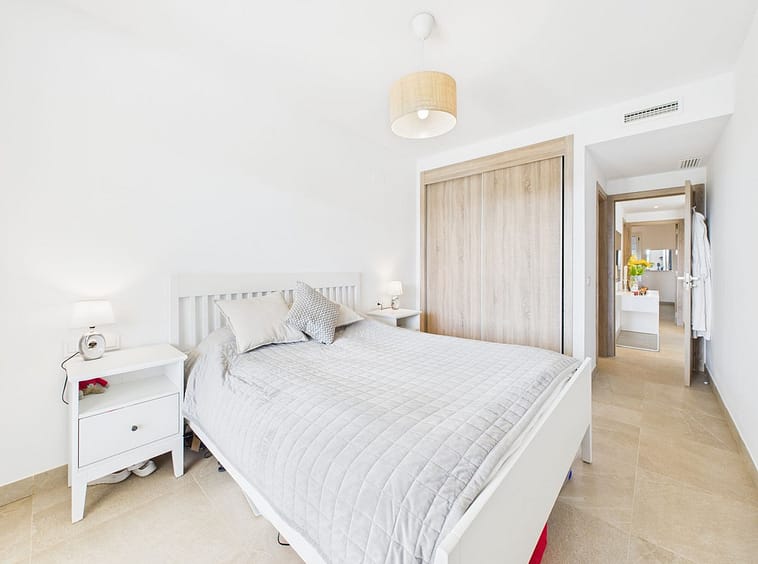 Completed in 2024, the apartment enjoys a bright and spacious open-plan layout, featuring a generous living and dining area that flows seamlessly onto a private terrace with garden and mountain views. With its southwest orientation, the property benefits from sunshine throughout the afternoon and spectacular sunsets over the surrounding hills.