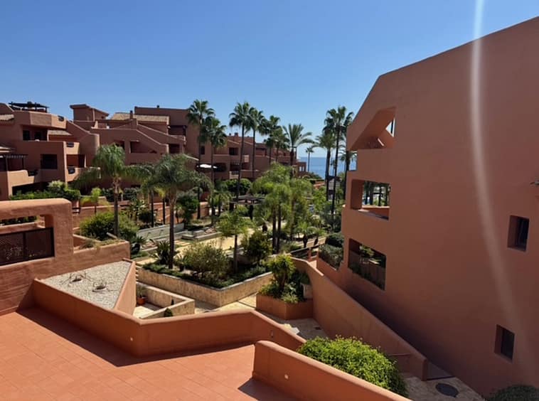 Located in the sought-after beachfront community on Estepona’s prestigious New Golden Mile, this elegant 2-bedroom, 2-bathroom apartment offers a luxurious coastal lifestyle with direct beach access and top-tier amenities. Walking distance to the vibrant Estepona town center with its bars, restaurants and shops. Boasting a south-east orientation, the property enjoys abundant natural light throughout the day and offers partial sea views from its spacious 20m² private terrace – perfect for al fresco dining or relaxing in the Mediterranean breeze. There is a garage space and store room included.