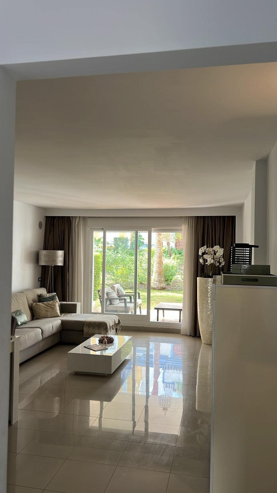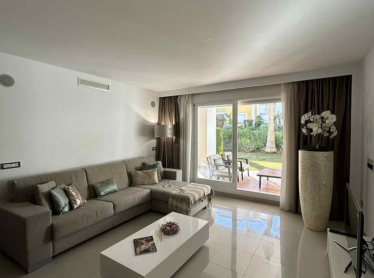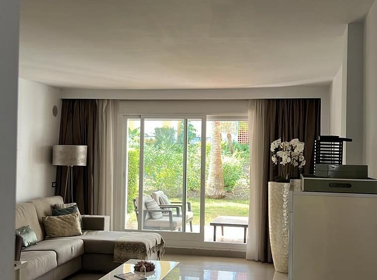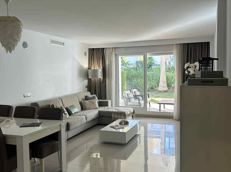 This beautifully appointed 2-bedroom, 2-bathroom ground-floor apartment , on the prestigious New Golden Mile of Estepona, offers the ultimate in comfort and convenience, with the added benefit of being within a resort that allows holiday rentals.