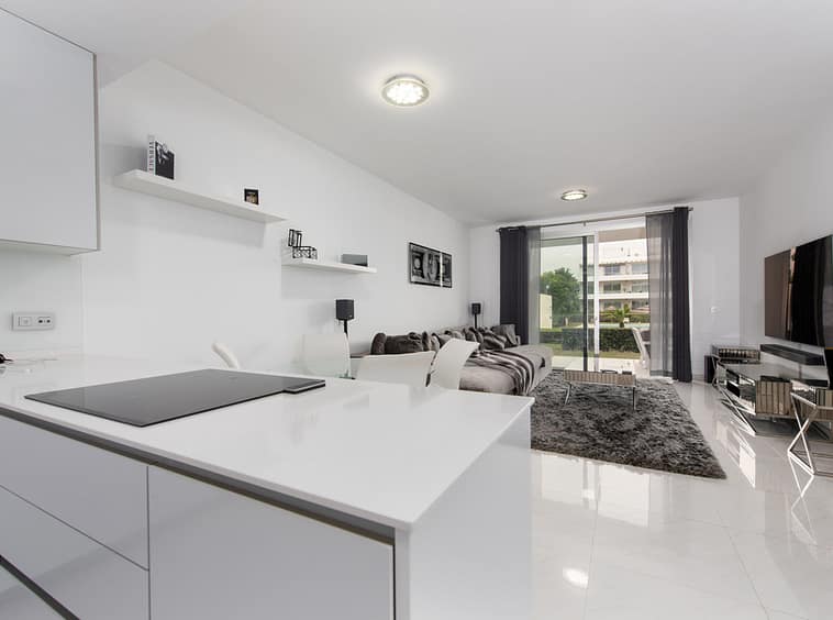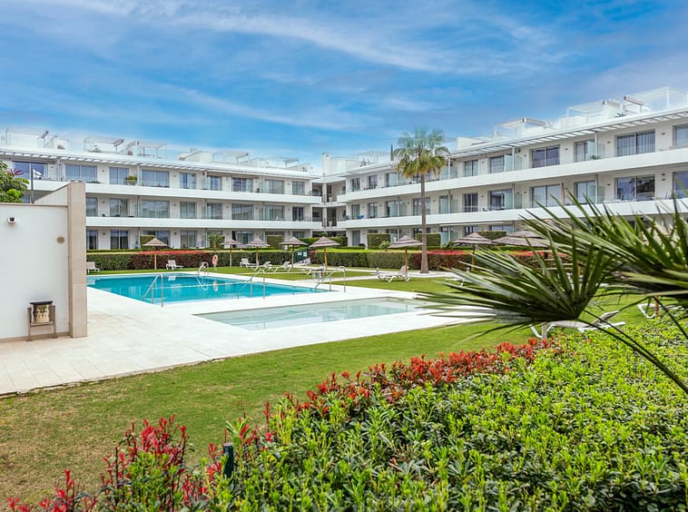 Modern, two bedroom, ground floor, west facing apartment with afternoon sunshine and direct access to the community gardens and swimming pool.