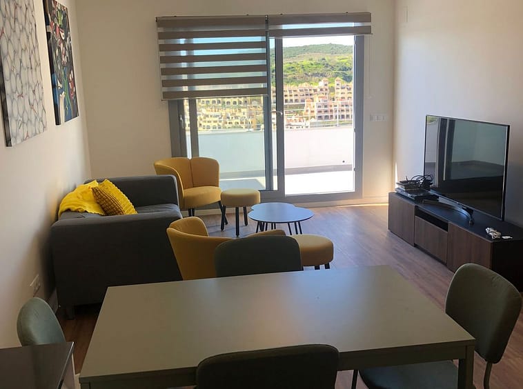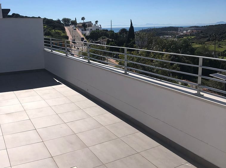 This apartment is located on the first floor and has a 20-square-meter terrace. With a surface area of approximately 90 square meters, it offers breathtaking views of both the Valle Romano golf course and the sea.