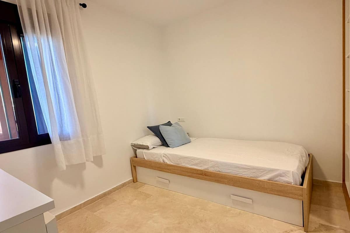 This apartment boasts sea views and comprises two bedrooms, a bathroom, a living room with a kitchen, and a nearly 20m² terrace overlooking the sea.