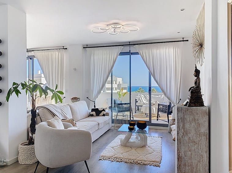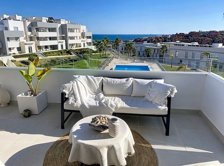 This duplex penthouse is located in the Serenity Views Urbanization, in West Estepona, and stands out for its impressive sea views and spaciousness. The property, situated in a gated community, offers the tranquility of living close to the sea and the convenience of being near golf courses, shops, restaurants, and schools.
