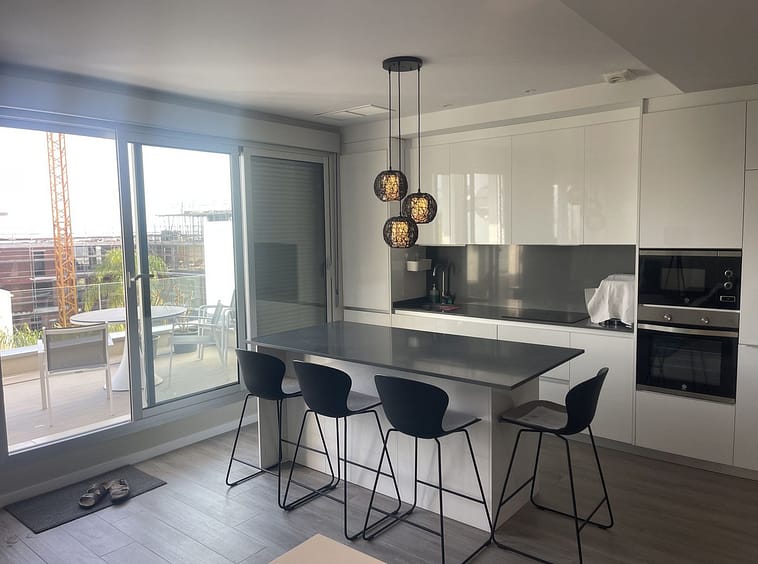 The apartment includes two spacious bedrooms, sleek modern finishes, and a seamless indoor-outdoor flow that captures the Mediterranean lifestyle.
