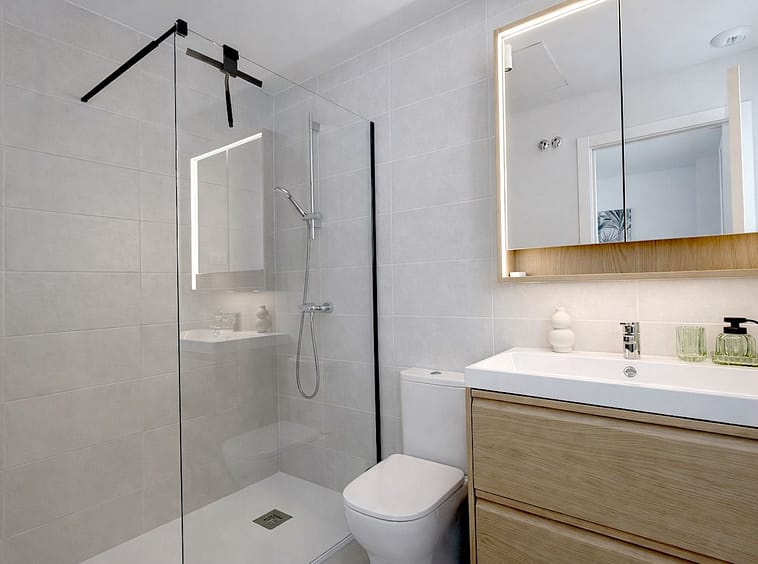 From the moment you walk in, the space feels light, fresh, and welcoming. Large floor-to-ceiling windows flood the apartment with natural light, creating an easy flow between the stylish interior and the private terrace, perfect for morning coffee or relaxed evenings. The open, contemporary design is paired with porcelain flooring, fitted wardrobes, and sleek, fully equipped bathrooms that feel both practical and elegant.