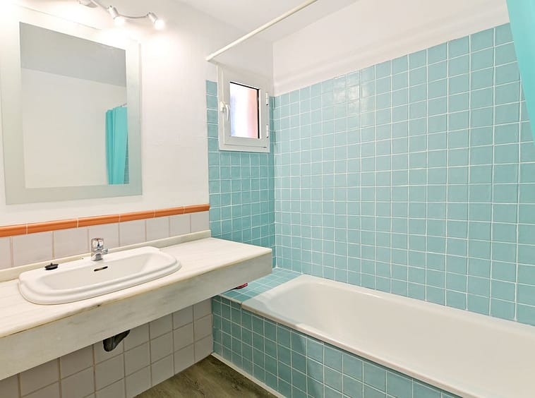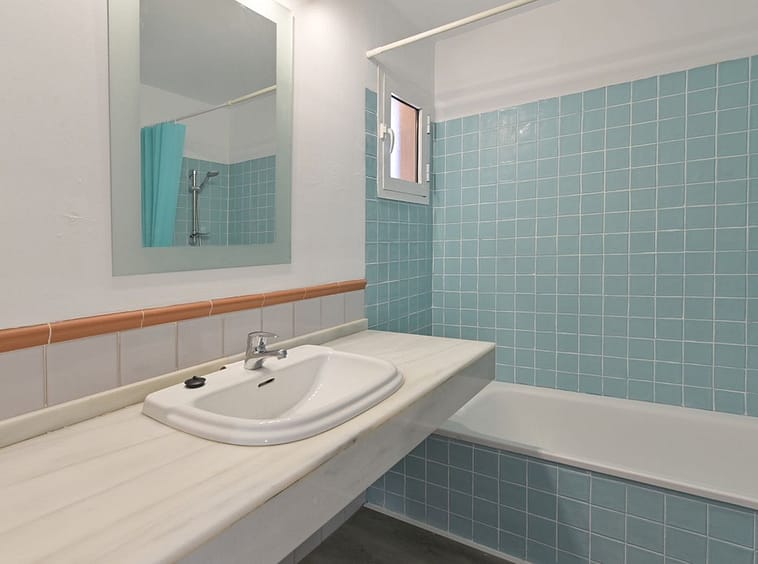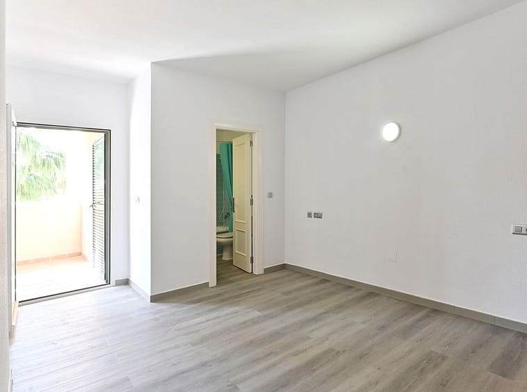The property has two spacious bedrooms. The master bedroom has an en-suite bathroom, while the second bedroom has been enlarged to incorporate a covered terrace, offering additional space perfect as a study area, office or for placing an extra bed.