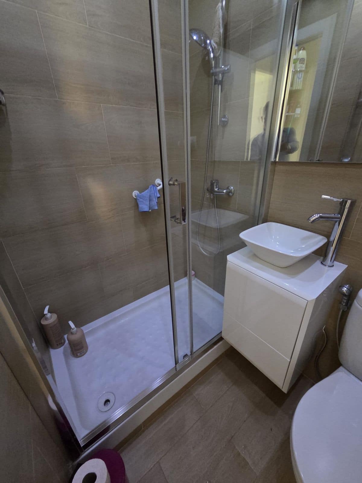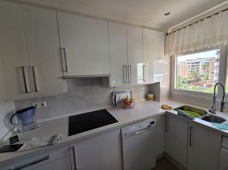 Excellent apartment located just 300 meters from the beach in a highly sought-after location in Fuengirola, close to all amenities, supermarkets, schools, train and bus stations. The apartment has been completely renovated and is in impeccable condition. It comprises a living-dining room, a terrace with Lumon glass, 2 spacious bedrooms with wardrobes, 2 bathrooms, and a kitchen with space for a dining area where daily life takes place. It also has a communal swimming pool and parking.