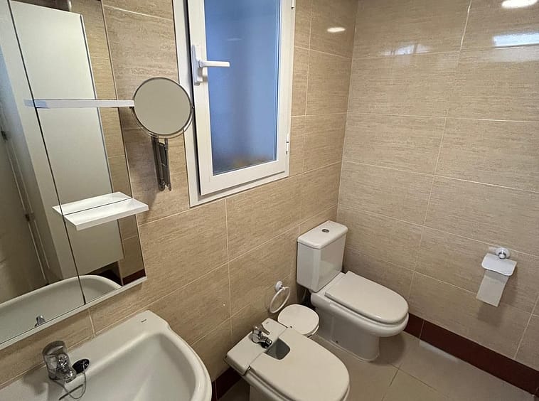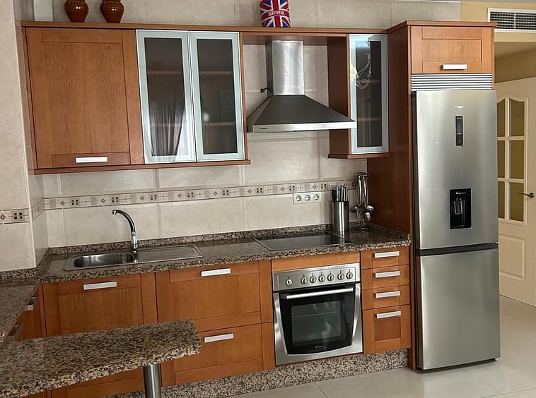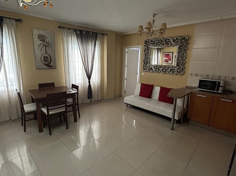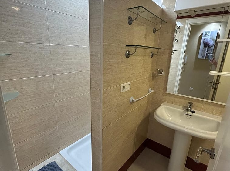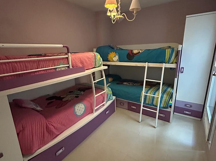 Ground floor apartment for sale, 66 m², in Fuengirola, Málaga. This apartment is just 100 meters from El Galgo beach (port area) and 100 meters from the heart of Fuengirola (Plaza La Constitución). It enjoys a prime location surrounded by shops, restaurants, and all kinds of amenities. The bus station is 150 meters away and the train station just 200 meters away. The apartment has air conditioning throughout. It features a full bathroom with shower and a window overlooking the patio, a spacious living room with two windows, an open-plan kitchen with appliances and all furnishings, a master bedroom with air conditioning and a window, and a second bedroom with two bunk beds plus a trundle bed, comfortably sleeping 5 people. It also includes wardrobes and a built-in wardrobe. There is a semi-covered patio with a laundry area. The price includes a private parking space and a storage room in the same building.