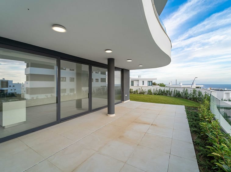 A generous 53 m² covered terrace extends the living space beautifully, ideal for relaxing, dining, or enjoying the warm afternoon sun thanks to its southwest orientation. Beyond the terrace, a 69 m² private garden creates a peaceful green retreat with open sea views and an unobstructed outlook across the valley and the communal pool. Whether for quiet mornings, long outdoor lunches, or sunset evenings, this exterior space truly enhances the lifestyle of the home.