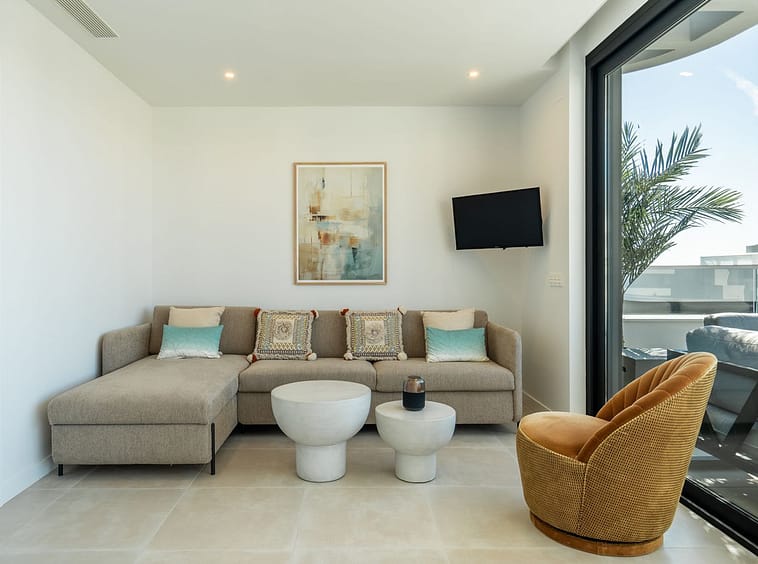 Higuerón West is an innovative residential project on the hillside overlooking Fuengirola, set within a unique and privileged location. Spanning 500,000 m², the development offers a wealth of green spaces, walking, running and cycling trails, children’s play areas, a pet park, organic gardens, shuttle service to the Beach Club, and stations for bicycles and electric cars. A co-working space is also included, designed to encourage networking and creativity.