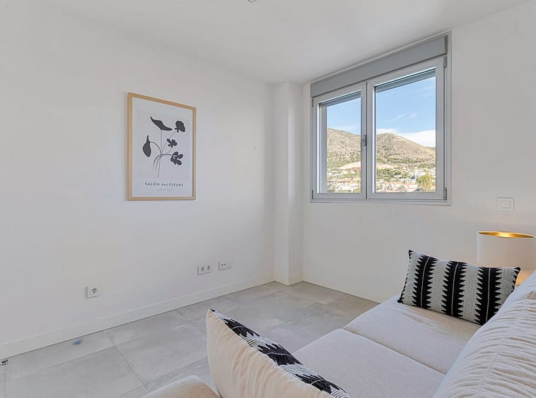 This elegant 2-bedroom, 2-bathroom apartment is located on the border of Fuengirola and Benalmádena, within the popular Reserva del Higuerón community. Its excellent location near the Carvajal train station provides easy access to Fuengirola, Torremolinos, Málaga Airport and Málaga city centre, making it ideal for both permanent living and holidays.
