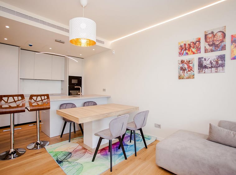 From the moment you enter, you’re greeted by a bright and open-plan living and dining area, seamlessly connected to a spacious terrace where you can lounge, dine, or simply soak in the Mediterranean sunlight. The kitchen is fully equipped with state-of-the-art appliances, complemented by a utility room with additional storage, a washing machine, and an independent dryer.