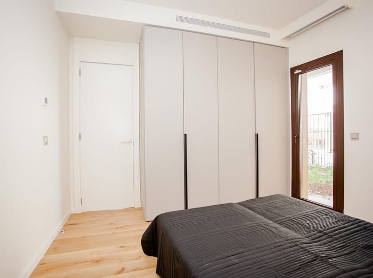 The apartment features two well-appointed bedrooms. The master suite includes an en-suite bathroom, fitted wardrobes, and serene views of the surrounding greenery. The second bedroom, equally bright and comfortable with fitted wardrobes, High-end features such as underfloor heating and centralized air-conditioning enhance the comfort and functionality of the space.