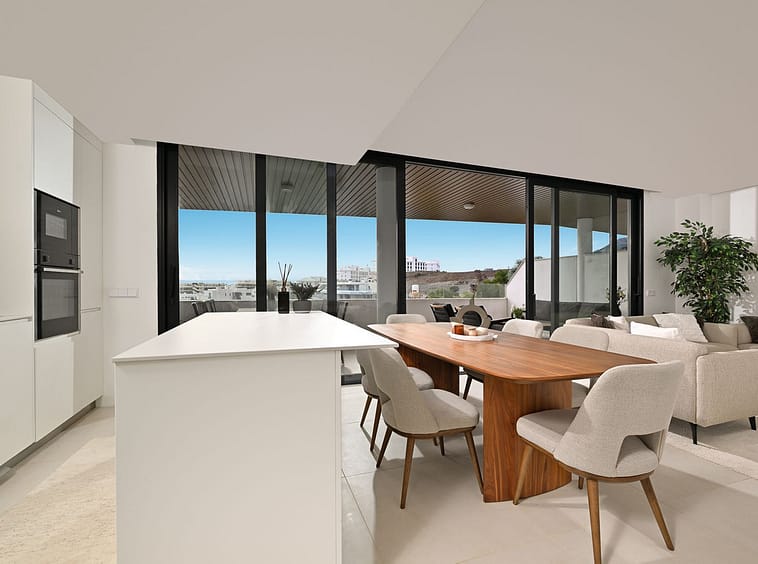 Inside, the property is presented in excellent condition and benefits from underfloor heating throughout, including in the bathrooms, air conditioning, double glazing, and fitted wardrobes. The living room is bright and airy, and the fully fitted, equipped kitchen is ideal for culinary enthusiasts. Additional features include a guest toilet, covered terrace, lift access, and fibre optic internet. The apartment is partly furnished, allowing for personal touches to be added.