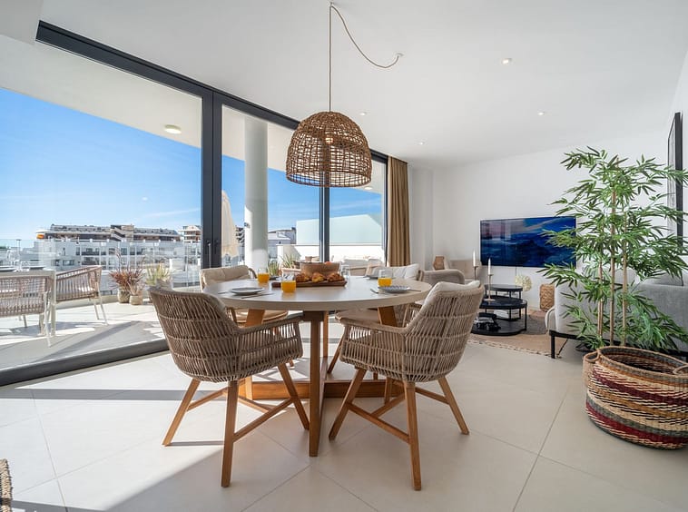 The floor to ceiling sliding windows creating a seamless transition where the interior living space and the expansive terrace blend perfectly into one.