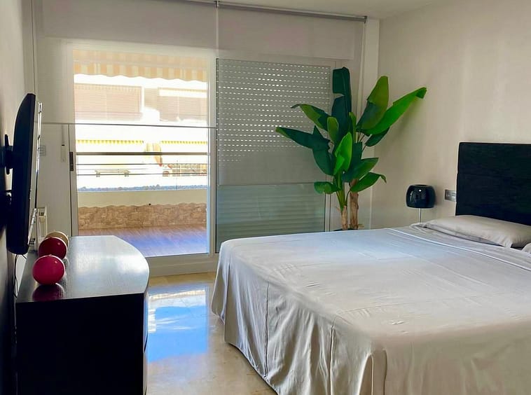 The property comprises two bedrooms and two full bathrooms, with the master bedroom being en suite and having direct access to the terrace.