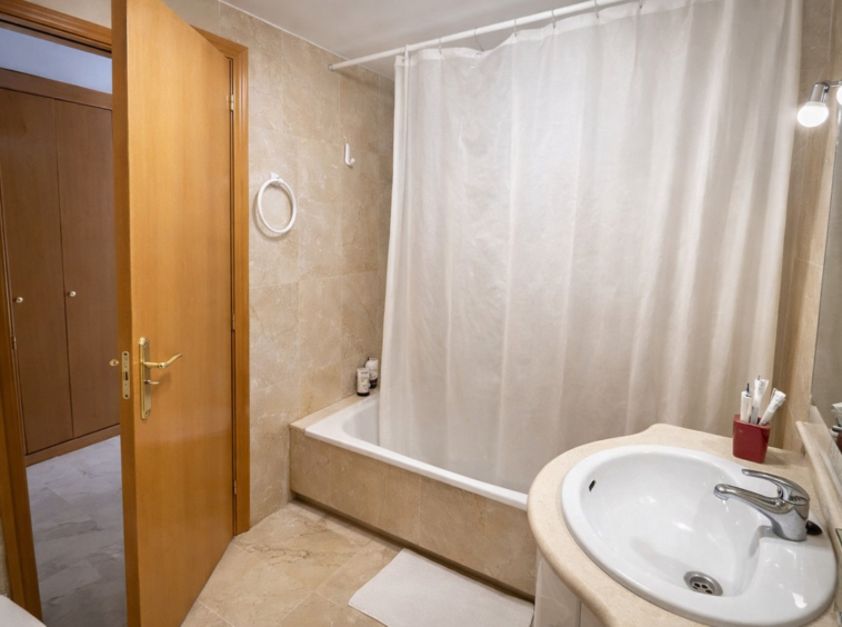 The apartment comprises two well-proportioned bedrooms, both with built-in wardrobes. The master bedroom stands out for its natural light and direct access to the terrace, providing added comfort and privacy. The property also offers two fully fitted bathrooms with a modern and functional design.