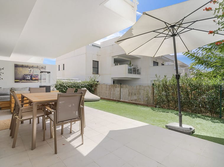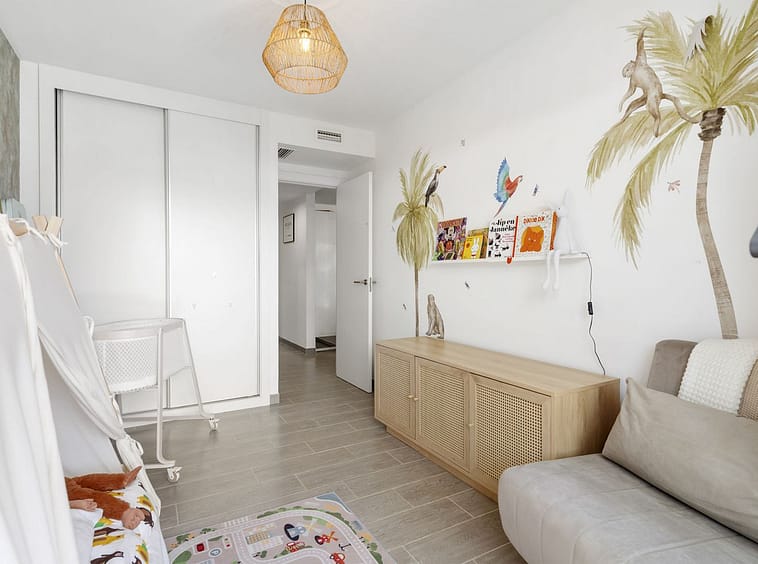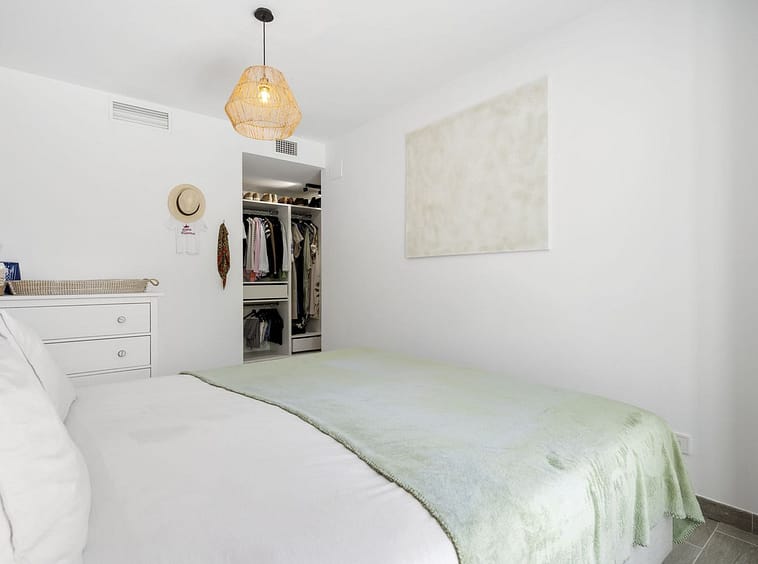 The master bedroom has built-in wardrobes and also provides access to the garden. In addition, this bedroom features a beautiful en suite bathroom. The second bedroom also has direct access to the garden. A pleasant bedroom, also with built-in wardrobes.