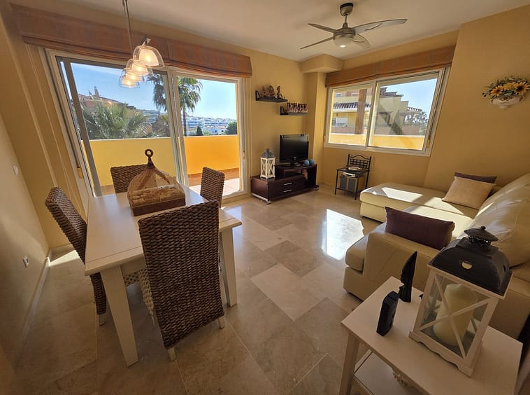 Step inside to find a bright and elegant living space finished with marble flooring, double glazing, and hot & cold air conditioning for year-round comfort. The apartment is sold fully furnished and features a fully fitted kitchen, fitted wardrobes, and a practical utility and storage room, making it ready to move into or ideal as a holiday rental investment.