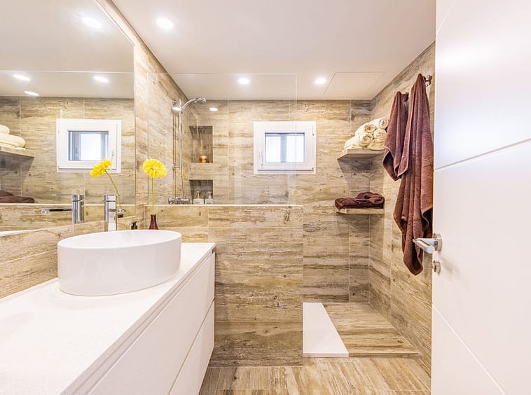 Comfortable interior layout featuring two spacious bedrooms, two modern bathrooms, and an open-plan living area with integrated kitchen.
