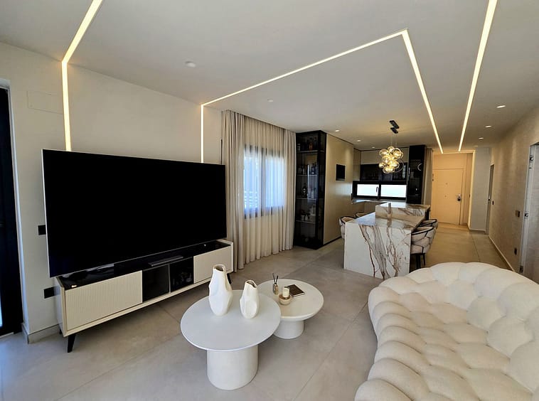 It offers 155 m² built area, distributed into 2 spacious bedrooms and 3 modern bathrooms, all finished to high-quality standards. Bright living room with direct access to a terrace, providing an excellent indoor-outdoor connection.