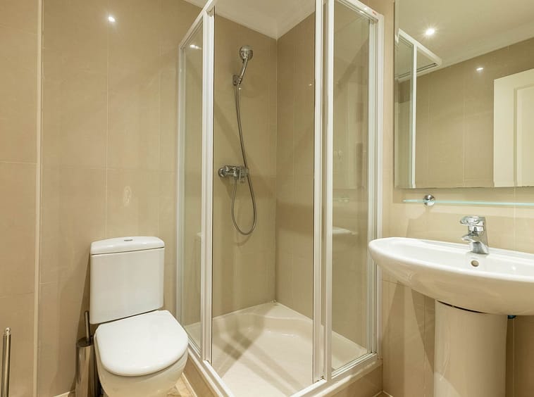 There are two bedrooms, with the master thoughtfully renovated to include dropped ceilings with luxury lighting and a modern en-suite bathroom featuring a walk-in rain shower. The apartment overall is very well kept and beautifully presented.