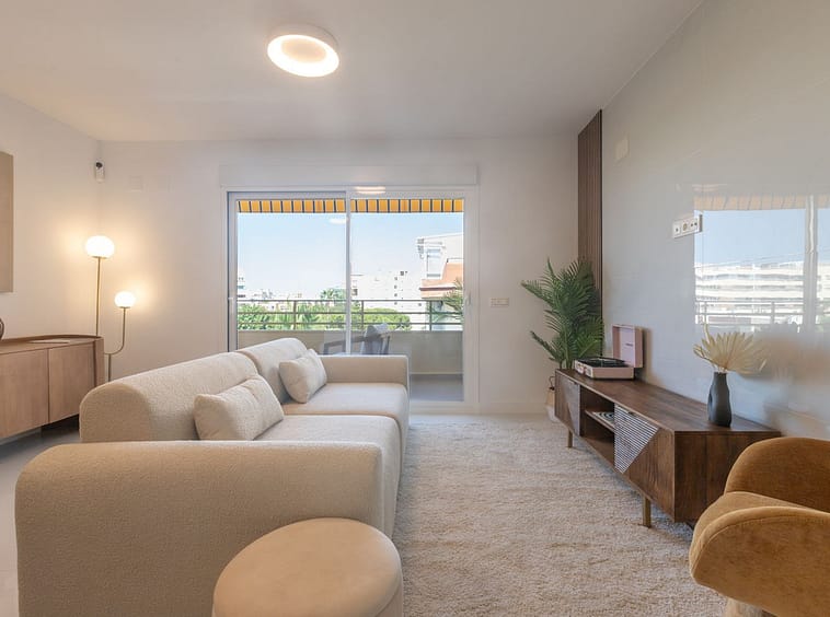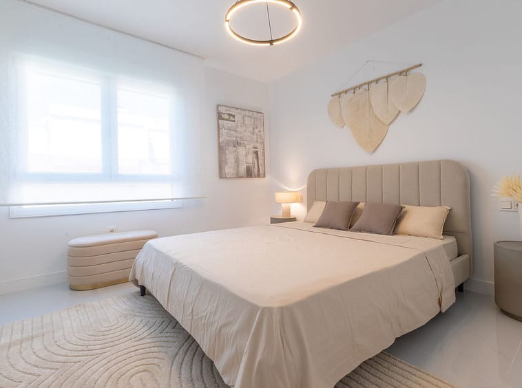 Both bedrooms are exterior: the master bedroom receives afternoon sun, while the guest bedroom enjoys morning light. Each room has built-in wardrobes, and the two bathrooms have been finished with elegant, modern touches and high-quality materials. Every detail has been carefully crafted to offer comfort and style—from double-glazed windows, air conditioning, to stylish finishes throughout the property.