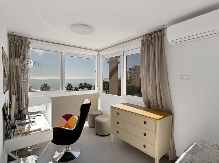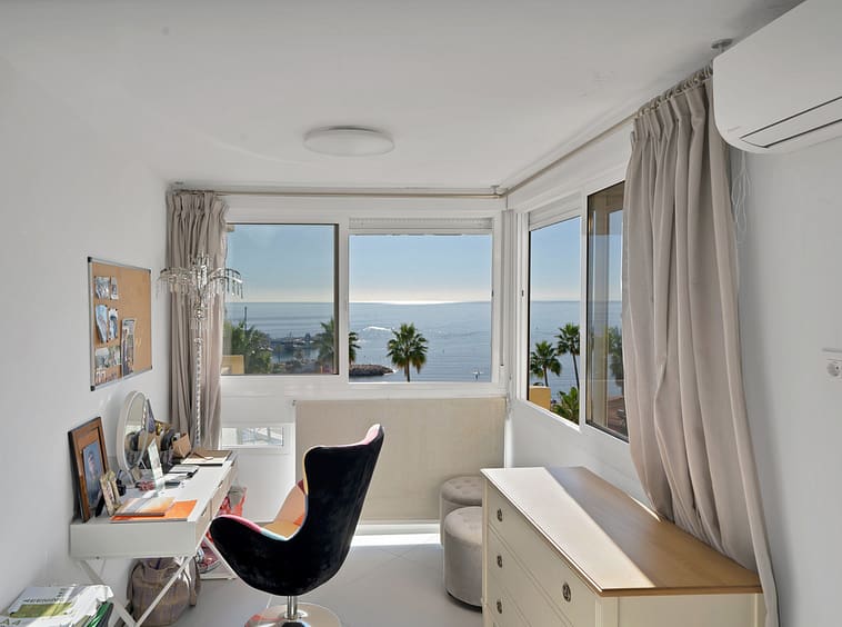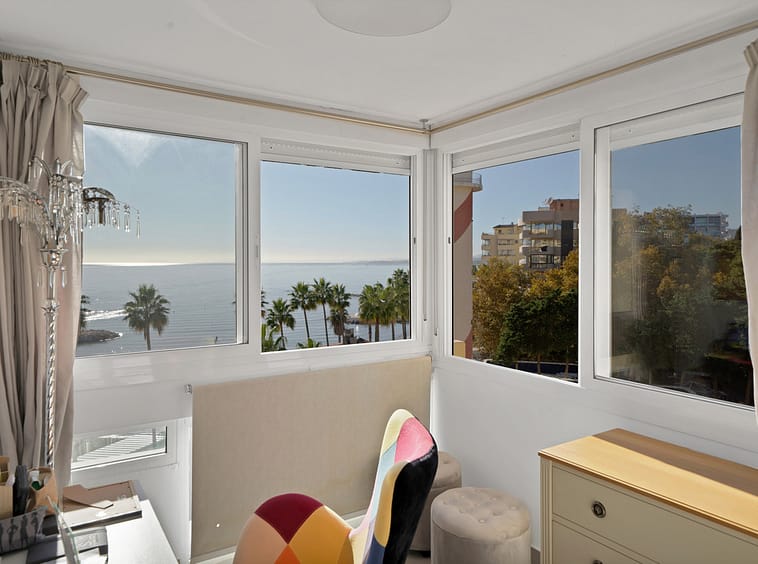 Renovated apartment with stunning sea views on the beachfrontThis beautiful fully renovated apartment is located on the frontline of the beach, in the Marbella Marina area, an unbeatable location with all essential services, restaurants, and the beach just a few steps away.From there, the property offers panoramic sea views from both bedrooms and the terrace. It features two bedrooms and two bathrooms (one en suite), a fully equipped open-plan kitchen connected to the bright living room, creating a modern and cozy atmosphere ideal for enjoying the coastal lifestyle.Includes a private underground parking space and storage room.The urbanization has three entrances: one on Avenida Duque de Ahumada, another on Avenida Antonio Belón, and the third on Calle Sevillano. Additionally, it offers a rooftop swimming pool and 24-hour concierge service.A perfect home for those seeking comfort, elegance, and a prime location by the sea.You have at your disposal the abbreviated information document. Costs: Taxes (ITP or VAT + AJD) + Notary and registry fees.NGS.