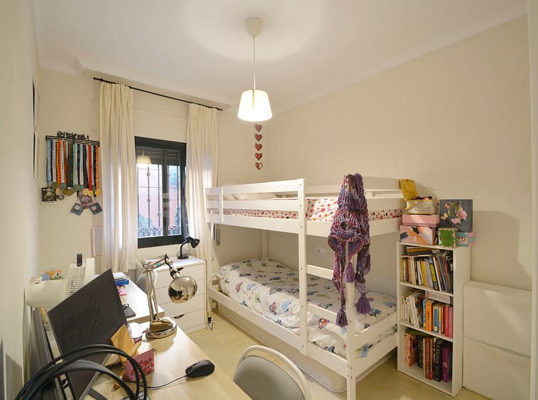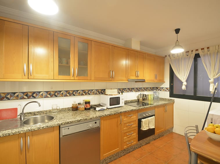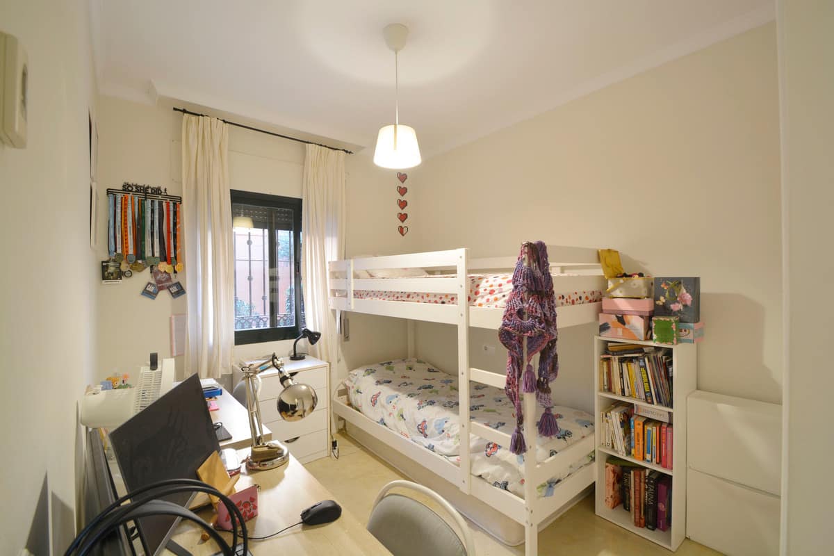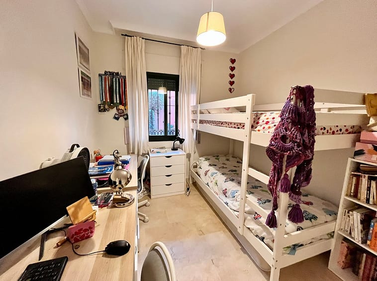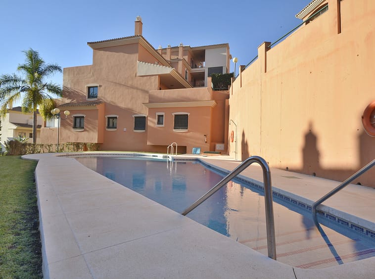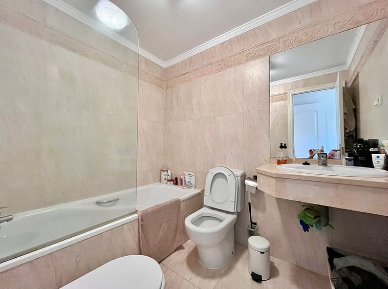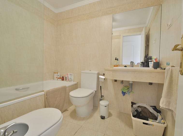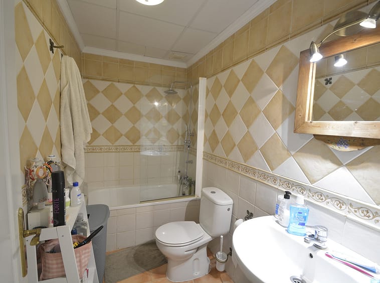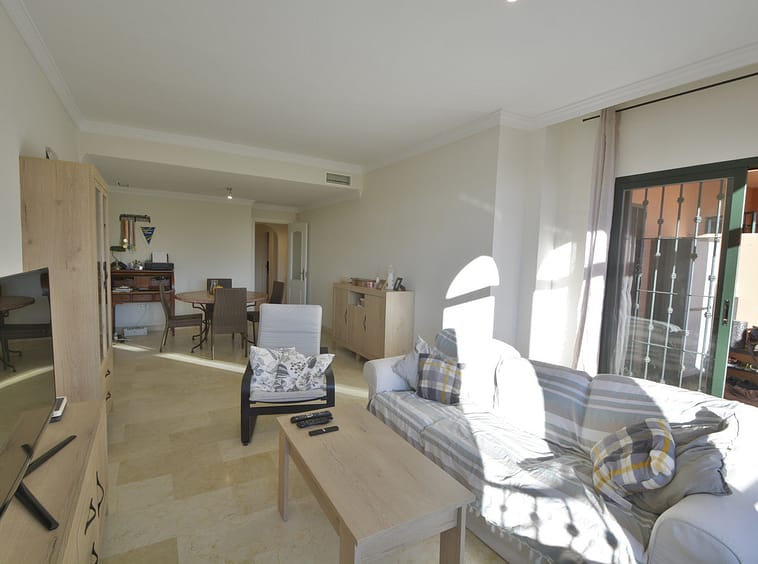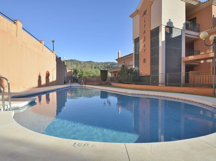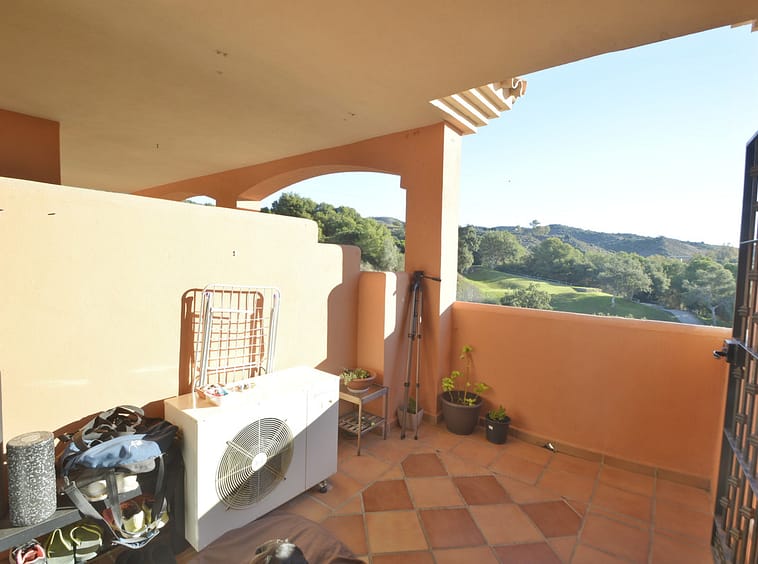 Fantastic apartment in Elviria-Marbella located on the golf course front line with open views and no buildings in front of you to block the view. The property is located in the gated complex El Mirador de Santa María Golf, surrounded by well-kept gardens and several swimming pools. The property has two bedrooms with built-in wardrobes, two full bathrooms, one of which is en-suite, a large, bright living-dining room with large windows, a separate fitted and equipped kitchen and a covered, sunny terrace. Parking space and storage room included. Very close to all amenities, such as supermarkets, banks, restaurants, pharmacies and the best beaches in Marbella. Just 35 minutes from Malaga International Airport. The property has potential, as it could be converted into a three-bedroom apartment, as some neighbours have done. Great opportunity. Come and visit! DS1