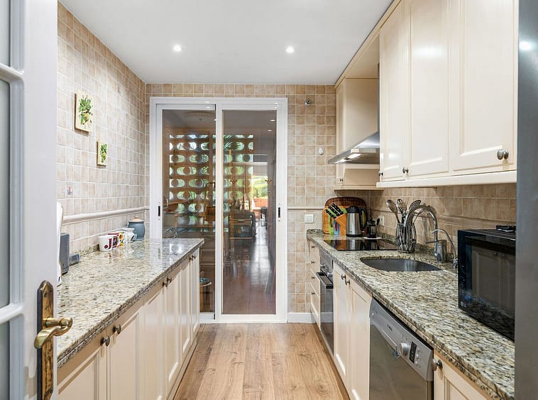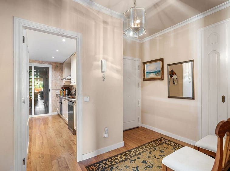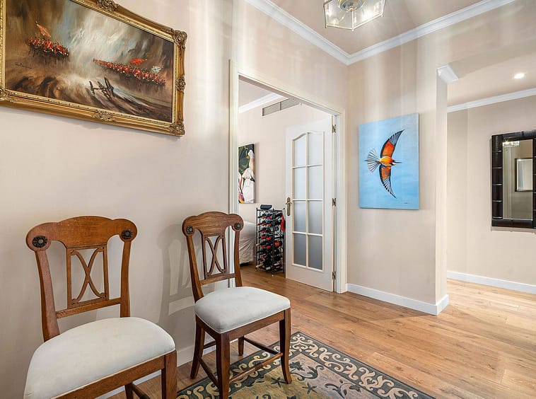 As the kitchen is currently separate from the living area, there is the possibility to convert it into an additional bedroom and create a large open-plan kitchen and living space, thanks to the apartment’s generous layout.