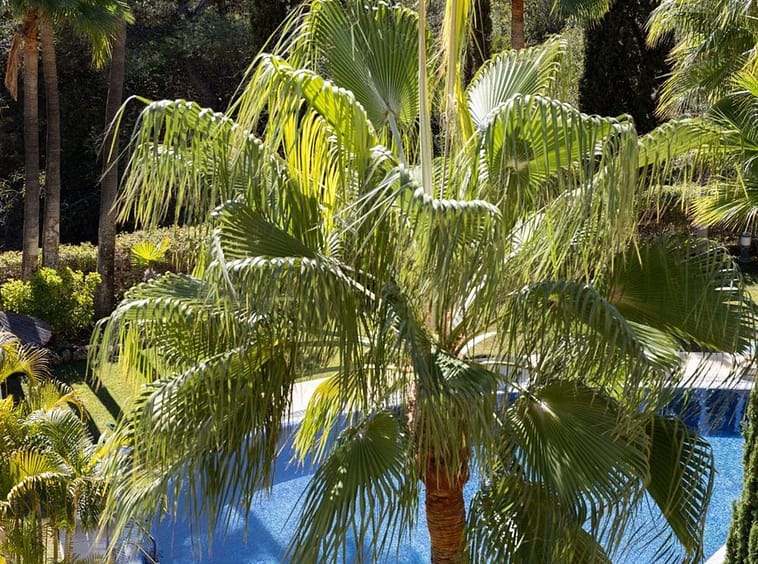 With stunning south-facing sea views, this exquisite property offers a tranquil retreat with its meticulously maintained gardens and two attractive swimming pools. The apartment features two spacious bedrooms, each with an en-suite bathroom, and a master suite that opens to the main terrace.
