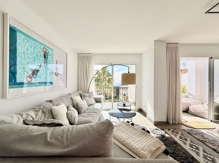 Indulge in refined coastal living in this elegant, newly renovated penthouse, set within a peaceful Andalusian community in the prestigious Marbella East, Las Chapas. Designed for comfort and sophistication, this residence offers breathtaking sea and mountain views, generous outdoor spaces, and a serene atmosphere just minutes from Marbella’s finest beaches.