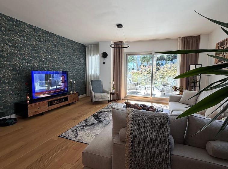 Modern ground floor apartment with sea views located in the sought-after Residencial Mediterráneo in Mijas Costa.