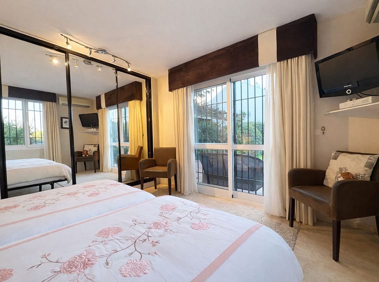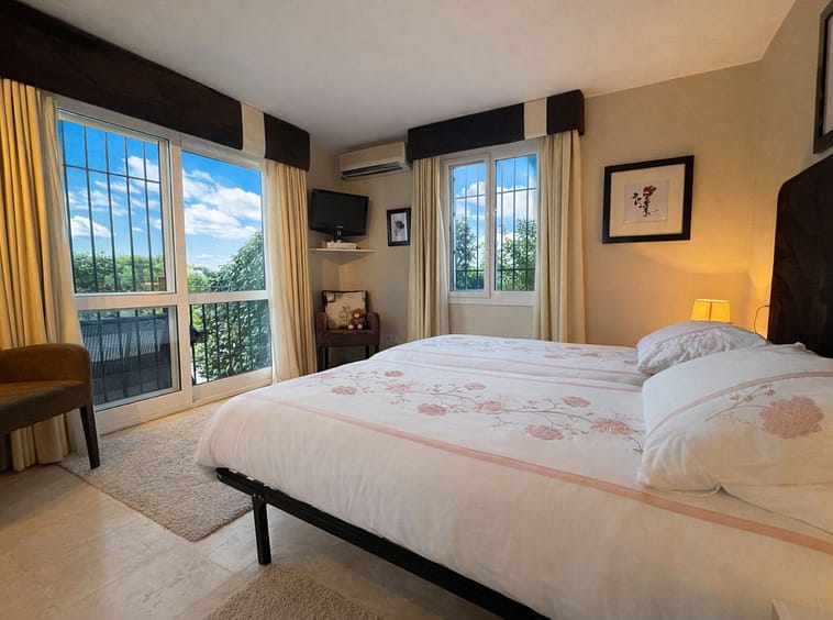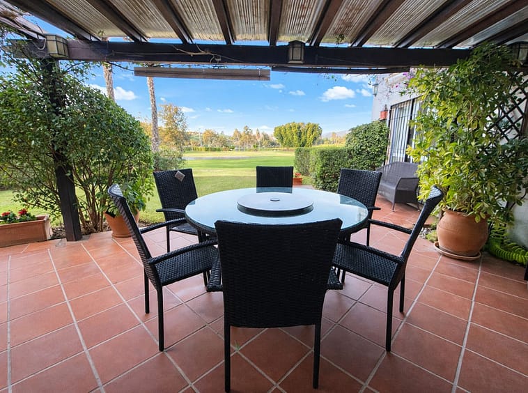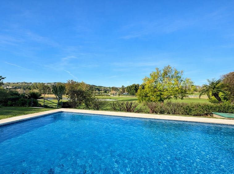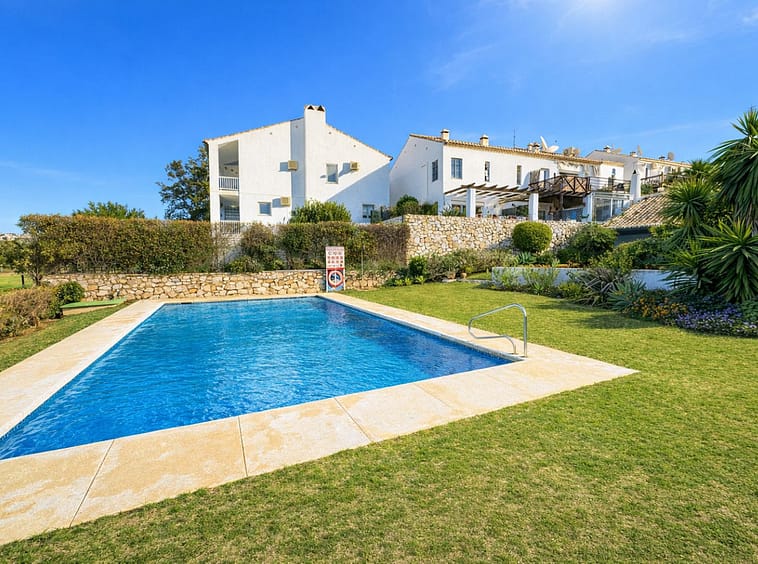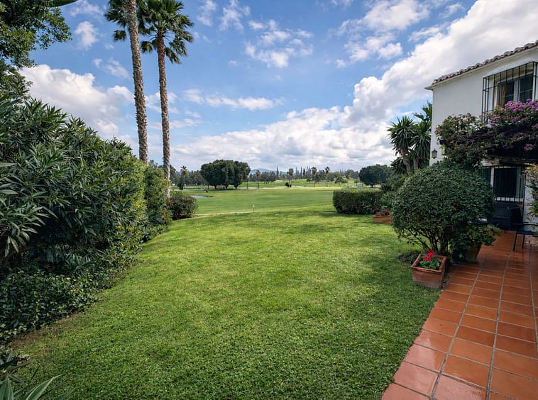 Sold fully furnished. With absolutely stunning views this apartment is situated right on the first line of Mijas Golf and faces west for the lovely afternoon and evening sun with wonderful sunsets. The gated complex of only 7 properties enjoys a large communal swimming pool and superb green areas. The property consists of a lovely split level lounge diner, 2 large bedrooms and 2 bathrooms, a fully fitted kitchen but best of all a lovely covered terrace with direct access onto the communal gardens. This property also includes a large underground parking space. Simply a fantastic investment as a permanent residence or holiday home.