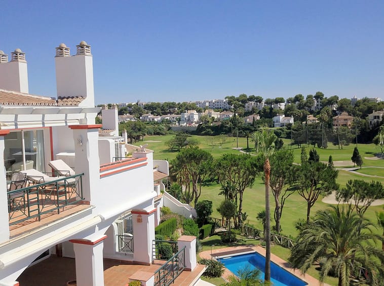 Set within a secure gated community with manicured gardens and a heated communal pool, the apartment is perfectly placed for both relaxation and convenience — only 5 minutes from public transport, restaurants, beach clubs, supermarkets and pharmacies. Golf enthusiasts are spoilt for choice with top courses nearby including Miraflores, Santa Clara and Golf Río Real.