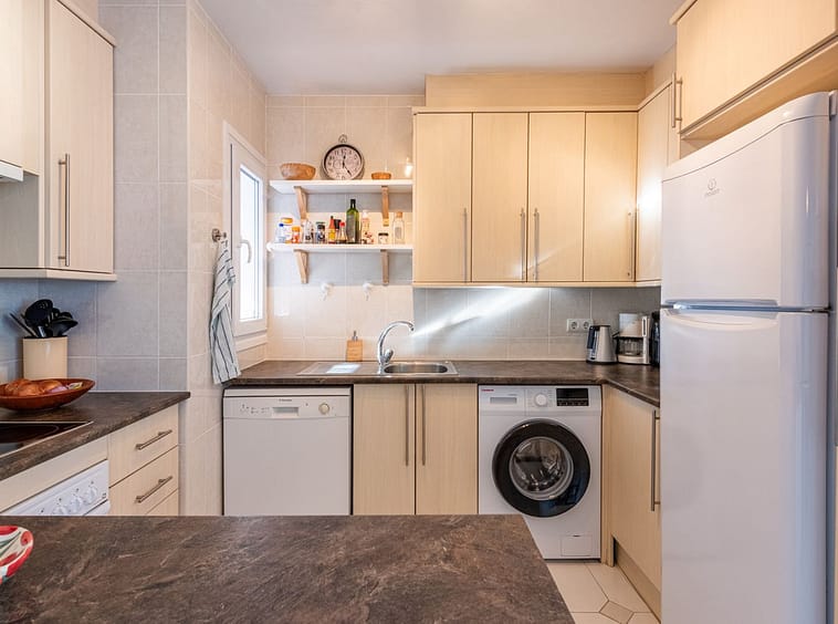 Magnificent South Facing Apartment in the sought after Miraflores development. The apartment is a corner unit offer 2 bedrooms and 2 bathrooms. A generous sized lounge and dining room opening from a semi open plan fully fitted kitchen out onto the patio with sea views. The bathrooms have both been freshly renovated to the highest spec with water heater systems supplying ample hot water on demand and towel heater rails, along with marble tops and every attention to detail. Both bedrooms come with fully fitted wardrobes. The community of Miraflores is known for its level of presentation and up keep. The communal large pool and spacious bathing and entertainment area, with a restaurant onsite – makes for the convenient holiday serving early morning coffees and late afternoon snacks. Malaga airport less than 30 minutes away. The beautiful beaches of Miraflores a short walk away. Restaurants, bars and tennis club all within walking distance – an excellent location. We have the keys ! Viewings at your convenience