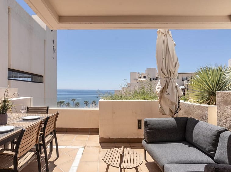 Two bedroom duplex penthouse, 3rd and 4th floor, in the frontline complex . South orientation with sea views.