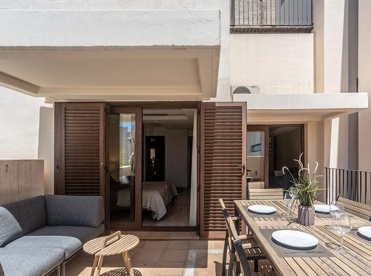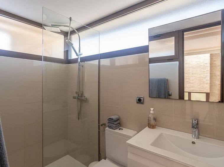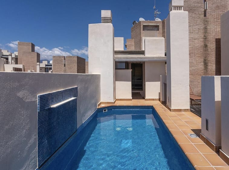 Upper floor, separate bedroom and bathroom, terrace with a private pool.