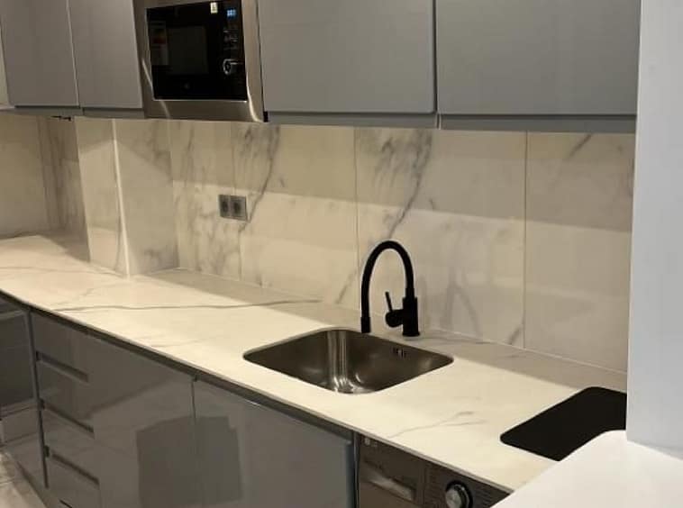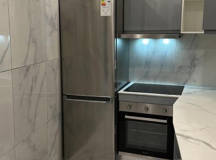 Upon entering, you'll discover a living space that seamlessly blends sophistication and comfort. The living area features sleek, minimalist décor and a neutral color palette, enhancing the sense of light and spaciousness. The fully equipped kitchen includes all necessary appliances, while the two tranquil bedrooms provide a peaceful retreat, with the master bedroom benefiting from an en-suite bathroom.