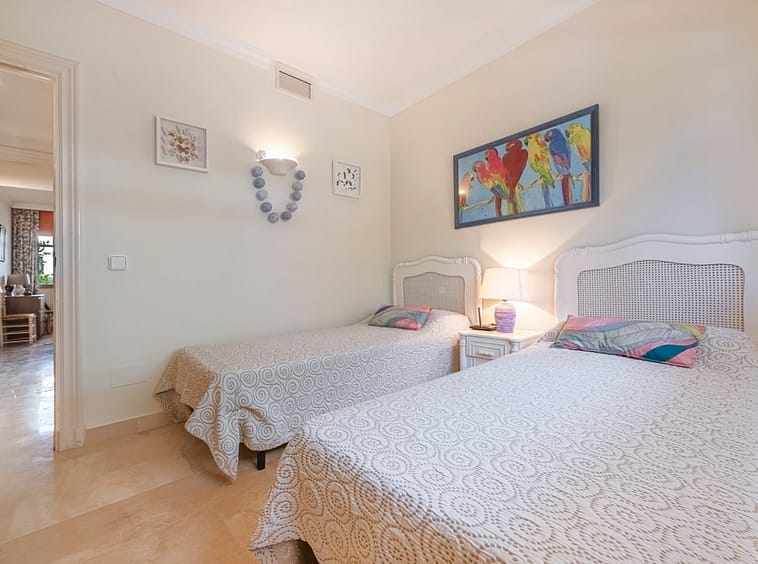 Charming ground-floor apartment situated in the heart of the golf valley, within walking distance to the Aloha Golf clubhouse and only a buggy drive from the prestigious golf course of Las Brisas. The property offers 2 bedrooms, 2 bathrooms, a fully fitted kitchen and a lovely covered terrace with nice private garden.