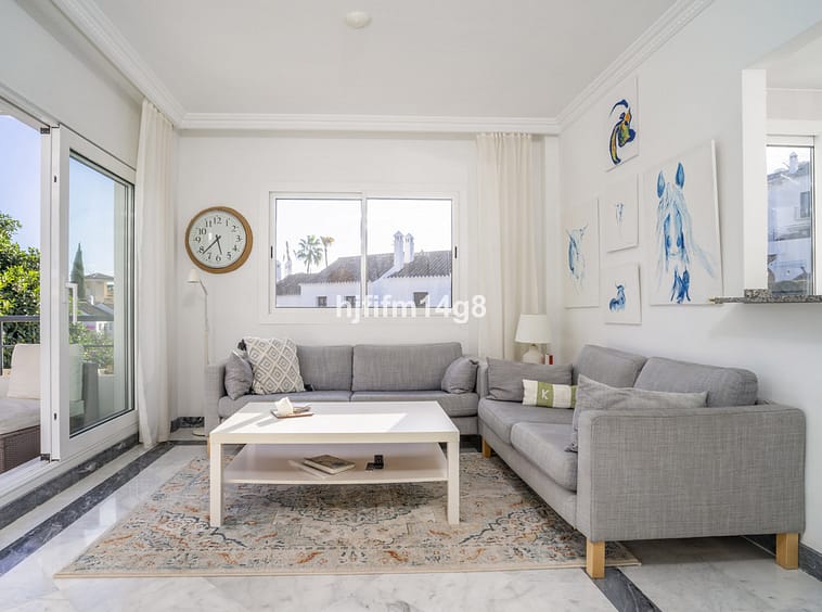 Welcome to this charming two-bedroom corner apartment located in the sought-after urbanisation of Señorio de Gonzaga, nestled in the heart of Nueva Andalucía. This gated community is known for its Mediterranean-style architecture, beautifully maintained gardens, and inviting swimming pools—creating the perfect environment for both permanent living and holiday stays.