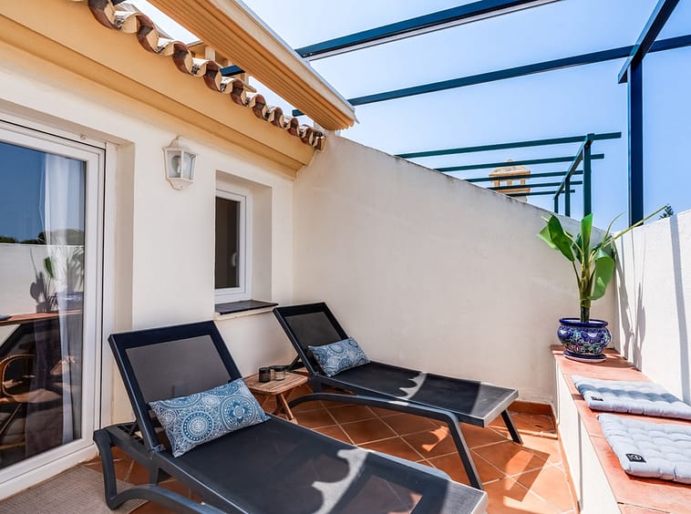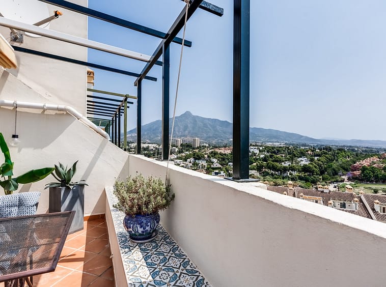 This 2-bedroom duplex penthouse is ideally situated in the heart of Nueva Andalucía’s Golf Valley, just a short walk to Centro Plaza with its vibrant selection of shops, restaurants, and supermarket. Puerto Banús is also within easy walking distance.