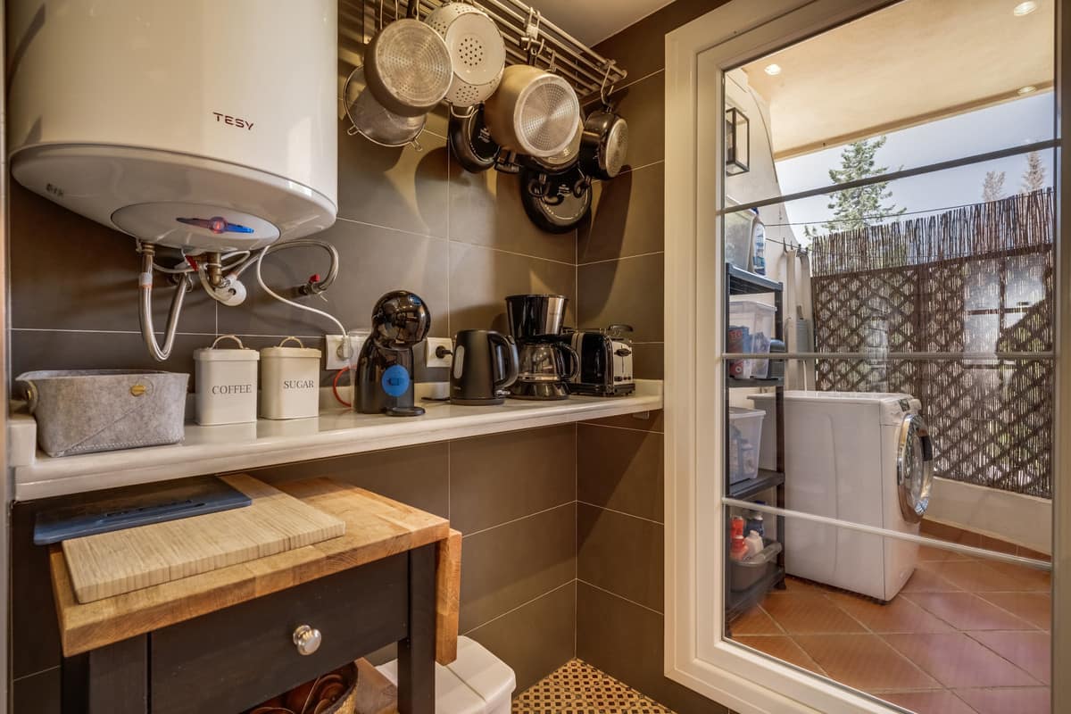 Main Floor: Bright living and dining area, fully equipped kitchen with separate laundry room, guest bedroom, and bathroom. Direct access to a spacious terrace with stunning views.