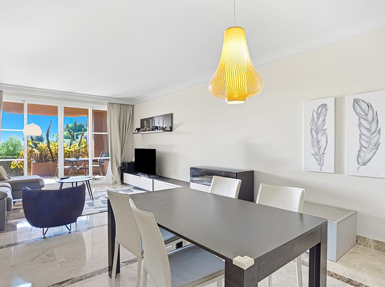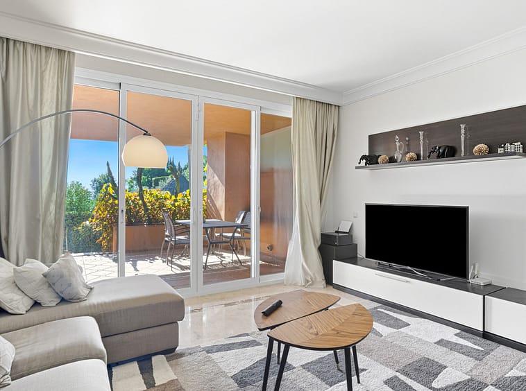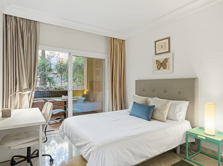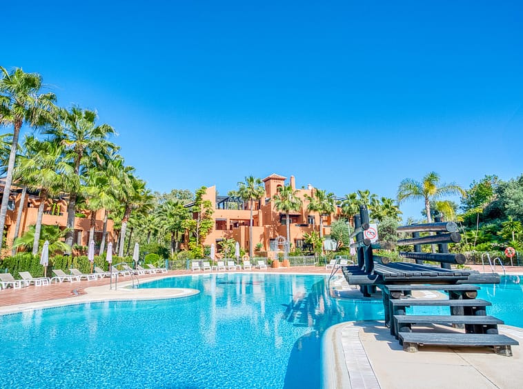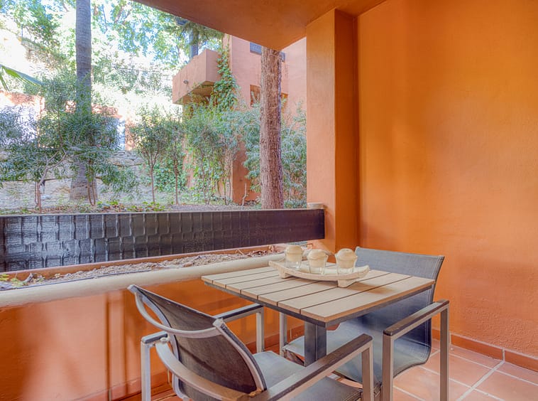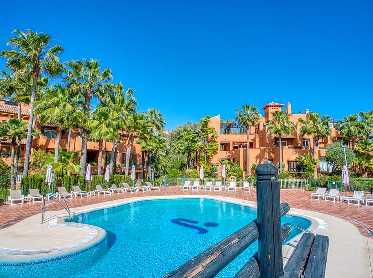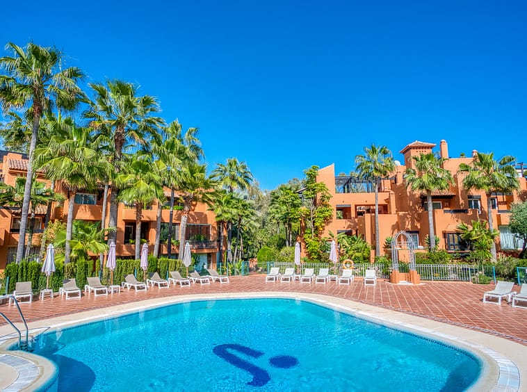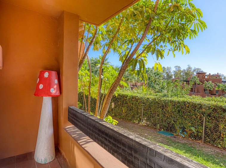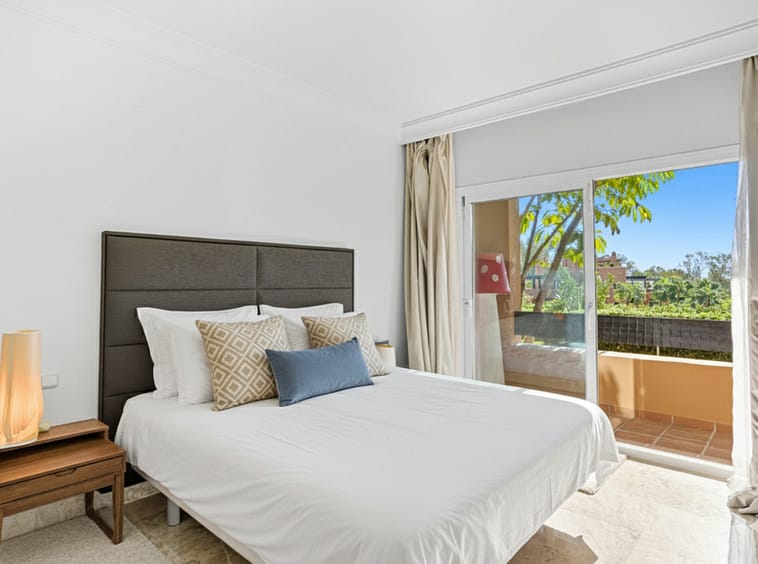 Elegant ground-floor apartment located in one of the most exclusive and peaceful developments in Nueva Andalucía. This carefully maintained property offers the perfect blend of comfort, privacy, and Mediterranean charm. It features two spacious bedrooms and two bathrooms, including a master bedroom with en-suite bathroom. Both bedrooms enjoy access to their own private terraces, providing plenty of natural light and added privacy. The independent kitchen is fully equipped and includes a convenient laundry area. The bright living-dining room opens onto a large private terrace with direct access to the communal pool, ideal for enjoying outdoor living all year round. Additional features include a private underground parking space and a storage room. Set within a gated community with 24-hour security, the complex is surrounded by lush tropical gardens, a lake, and a large swimming pool, offering a secure and peaceful environment. Ideally located just minutes from Puerto Banús, top golf courses, and all essential amenities, this property is an excellent choice as a permanent residence, holiday home, or investment opportunity.